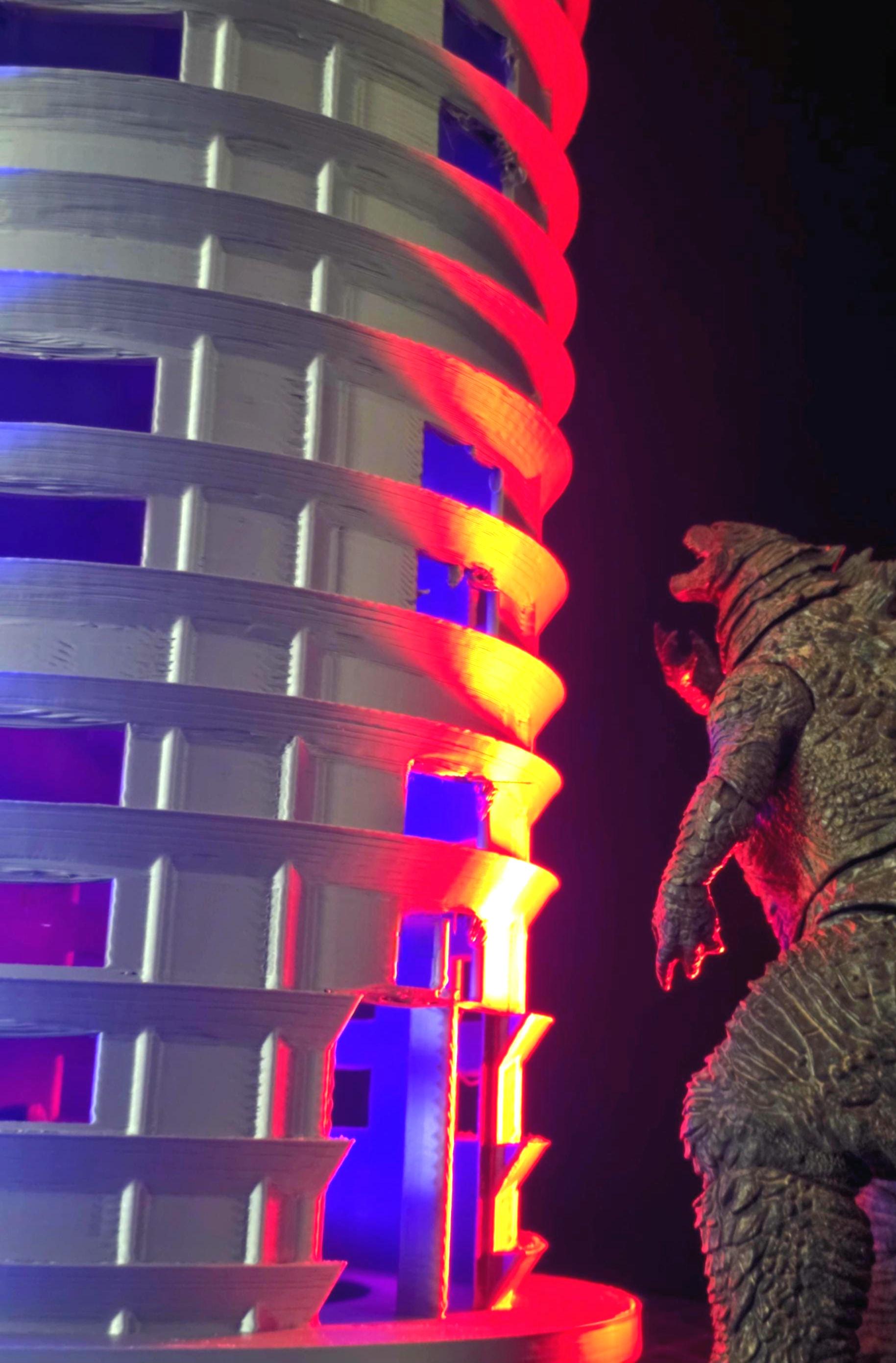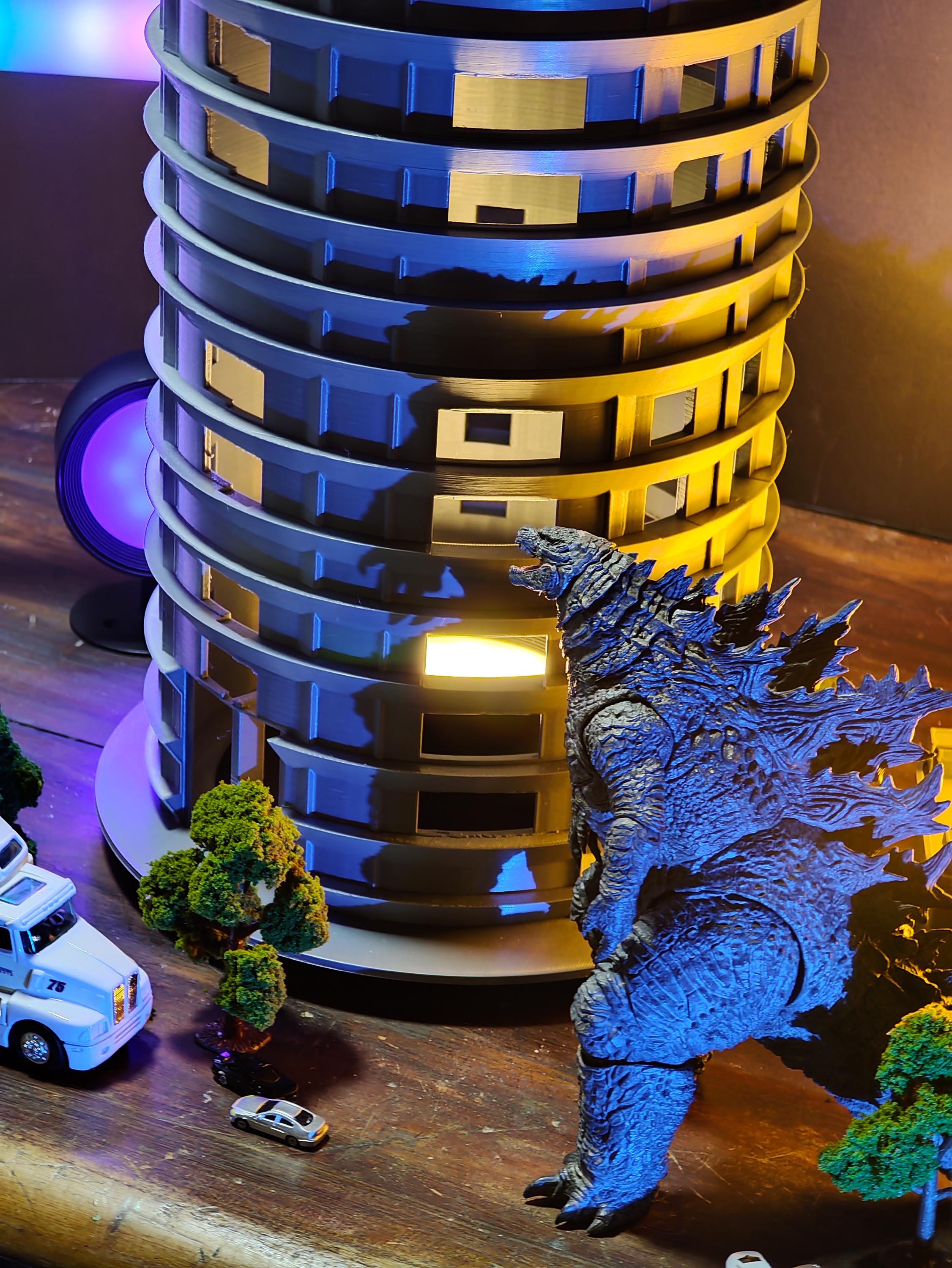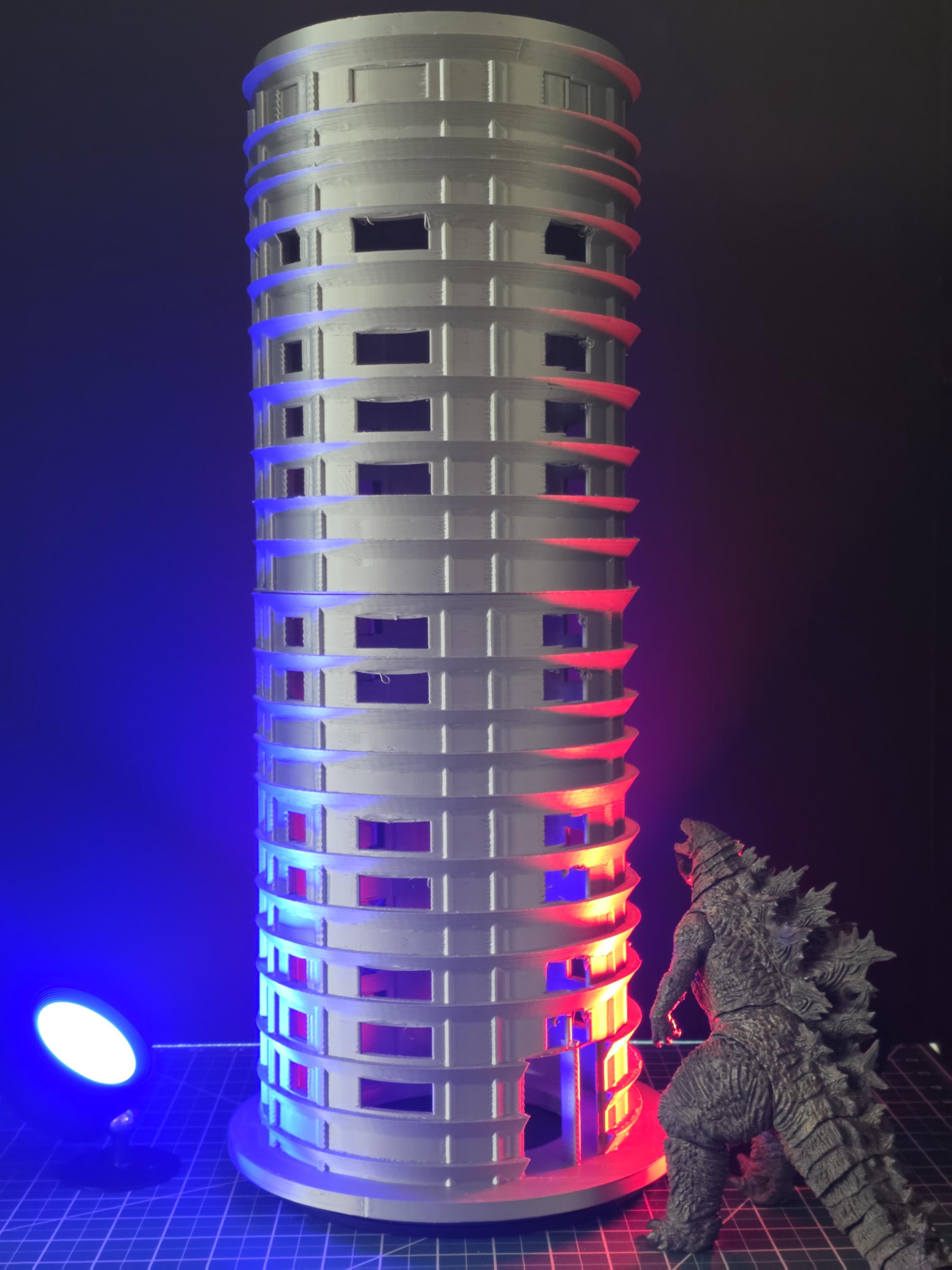 Set the stage for an epic XXL showdown with this custom 3D Building, at 1:64 scale that makes a 22 inch behemoth! Perfect for Gundam Displays and collectors, diorama builders, or anyone who loves a dramatic cityscape.