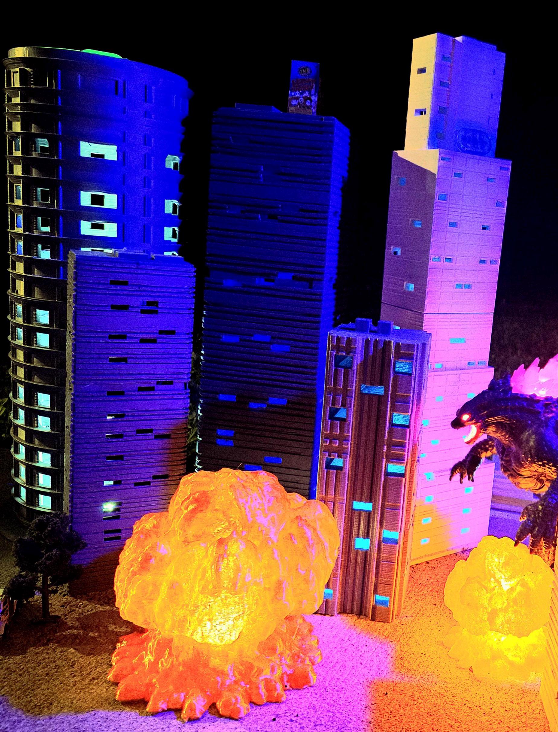 3D Printed City Set – Miniature Buildings, Explosions, Rechargeable Lights